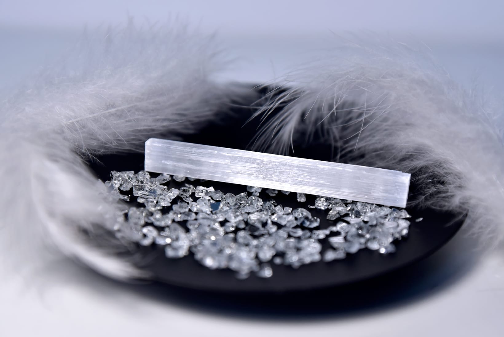 Селенитът не се нуждае от често пречистване – той сам по себе си е чистота.