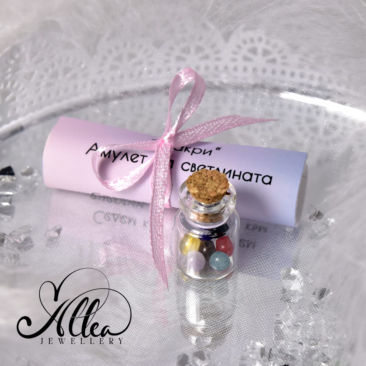 Във всяко шишенце съхранява камъчета, символизиращи седемте основни енергийни центъра – чакрите, които тихо направляват нашите усещания, емоции и вътрешен ритъм. Когато те са в хармония, човек се усеща цял. Когато една от тях се разколебае, останалите започват да шепнат, че е време за внимание.